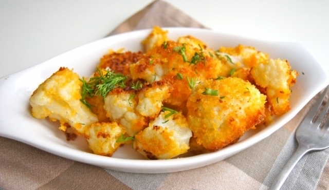 капуста цветная, сухари пшеничные, яйцо куриное, масло подсолнечное, укроп и другие пряные травы, соль поваренная пищевая