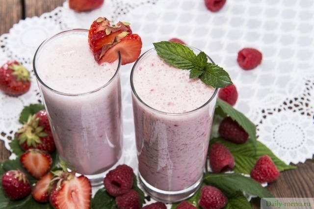 молоко 1%, творог, 0 % , вода, малина, мёд натуральный, мята свежая