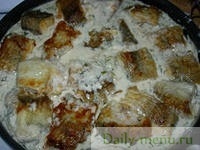 минтай филе, сметана 10,0% жирности, сок лимонный, цедра лимонная, мука пшеничная , орех мускатный