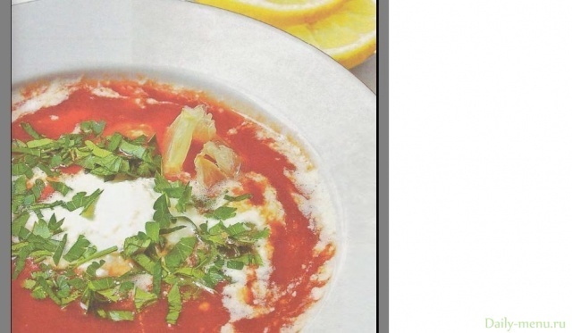 сок томатный, творог, 5 % , сок лимонный, укроп и другие пряные травы, сахар-песок, масло подсолнечное, перец черный молотый, соль поваренная пищевая