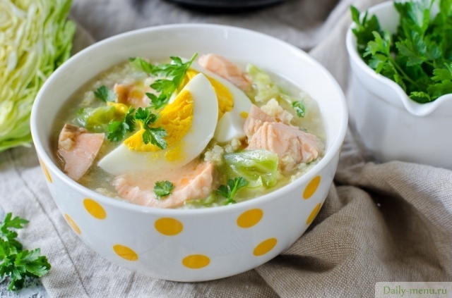 вода, кета натуральная консервы, яйцо куриное, лук репчатый, лук зеленый, укроп и другие пряные травы