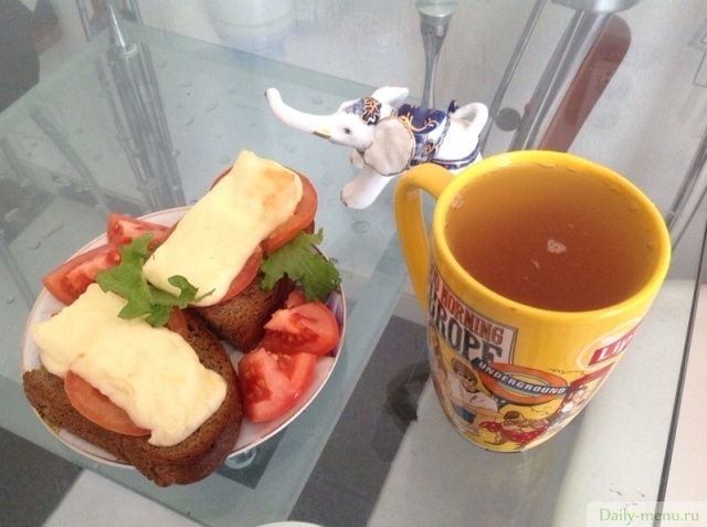 Магги 1 нед. 3 день обед ( ржаные тосты с помидором и сыром)