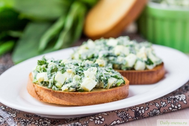 яйцо куриное, хлеб зерновой, шпинат, сметана 10,0% жирности, кинза, соль поваренная пищевая