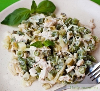 Салат Зеленый из стручковой фасоли и курицы