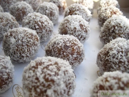 орех грецкий, изюм, финики, кокосовая стружка, мед натуральный (мёд), курага, какао-порошок