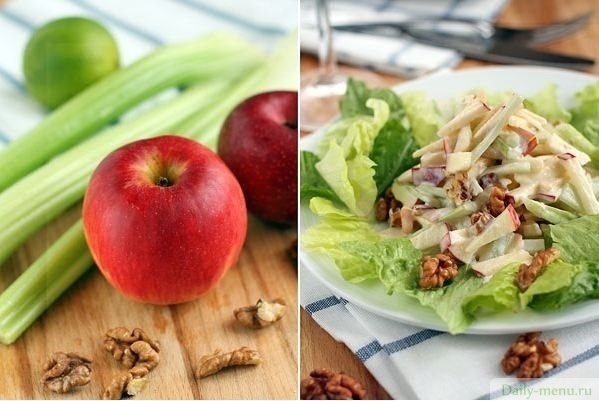 сельдерей черешковый, яблоки, орех грецкий, салат, сметана 10,0% жирности