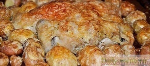 картофель молодой, куриный окорочок, кефир 1% жирности, лимон, чеснок
