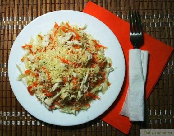 капуста белокочанная, куриная грудка, без кожи, морковь, огурец грунтовый, сыр 20% славия "грация", масло оливковое