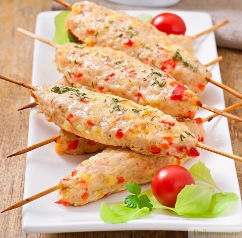 Куриный кебаб с кусочками перца. Фото: Shutterstosk