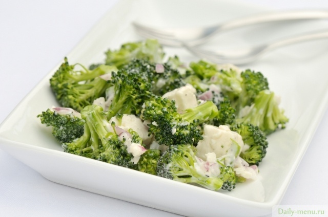 капуста цветная, брокколи, лук репчатый, сметана 10,0% жирности, соевый соус, соль поваренная пищевая, чеснок, паприка сушёная, молотая, перец черный молотый