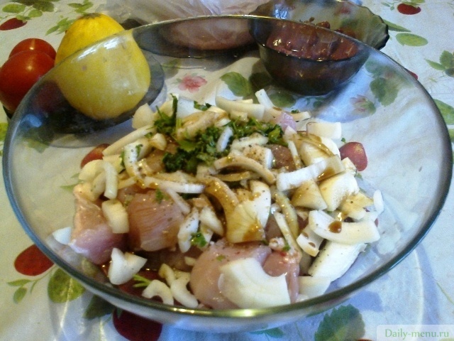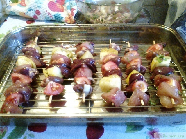куриное филе, сердце куриное, печень куриная, помидоры, лук репчатый, соевый соус, масло подсолнечное, масло сливочное 72%, петрушка