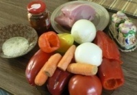 вода, перец болгарский красный, индейка, грудка без кожи, лук репчатый, помидоры, морковь, рис белый, томатная паста, соль поваренная пищевая, сахар-песок