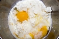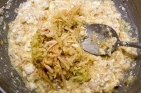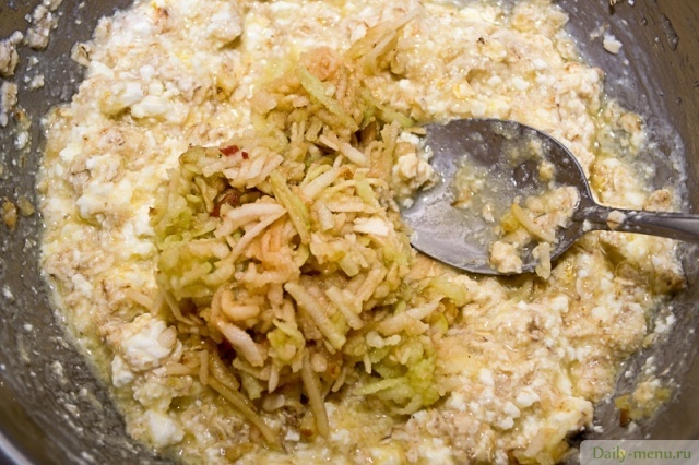яблоки, овсяные хлопья геркулес, творог, 2 % , яйцо куриное, сахар-песок