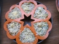 куриная грудка, без кожи, творог, 9 %, перец красный сладкий, лук репчатый, яйцо куриное, укроп и другие пряные травы, сыр полутвердый (голландский), соль поваренная пищевая, чеснок, перец черный молотый