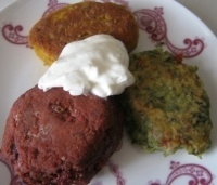 морковь, свекла, кабачок, мука цельнозерновая, яйцо куриное, лук зеленый, масло подсолнечное, соль поваренная пищевая, имбирь порошок, перец черный молотый