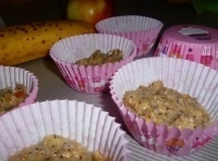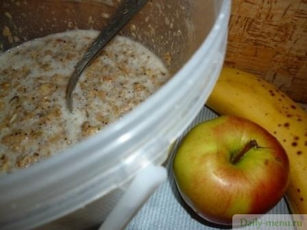 овсяные хлопья геркулес, яблоки, банан, яйцо куриное, молоко 3,2% , сахар-песок, масло подсолнечное, мак-семя, разрыхлитель теста, ванилин, корица