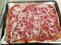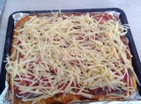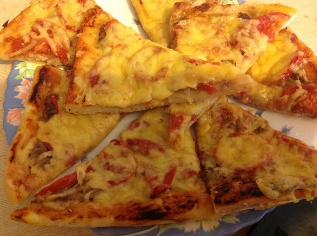 11 достаем из духовки пиццу, посыпаем тертым сыром