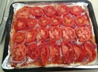 1. Подготовить овощи (лук нарезать полукольцами, помидоры кружочками)