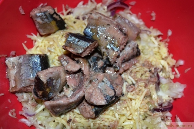 капуста белокочанная, лаваш армянский, тонкий, сайра в масле консервы, сыр голландский, лук репчатый, сметана 10,0% жирности