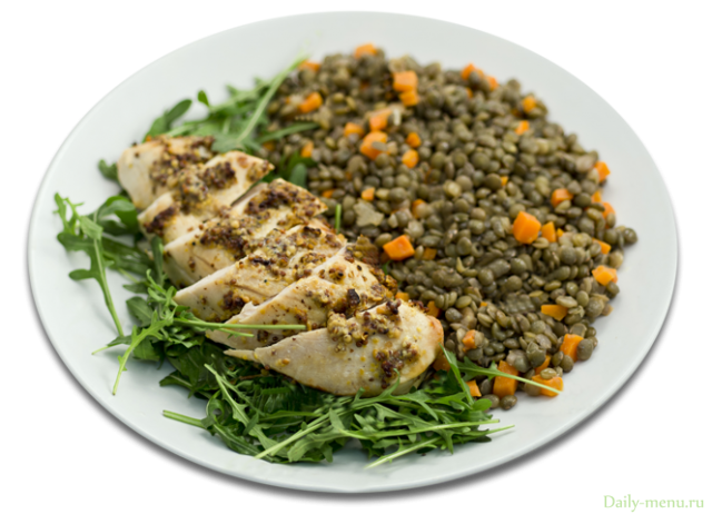Чечевица с запечённой курицей