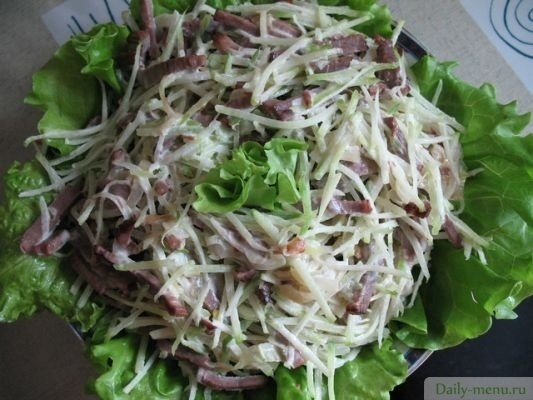 вода, курица филе, без кожи, редька зеленая, огурец грунтовый, майонез , соль поваренная пищевая, укроп обыкновенный