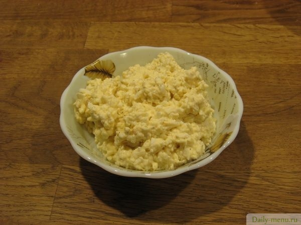 яйцо куриное, сыр плавленый, майонез , соль поваренная пищевая, чеснок, перец черный молотый