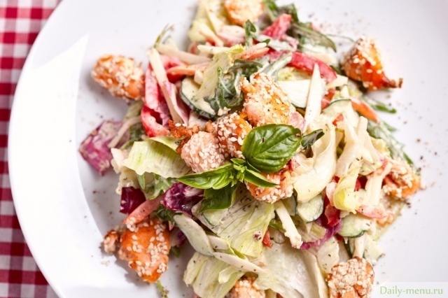 Легкий весенний салат с кунжутом