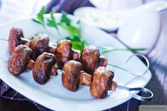 шампиньоны, масло оливковое, соевый соус, соль поваренная пищевая, хмели-сунели, перец черный молотый