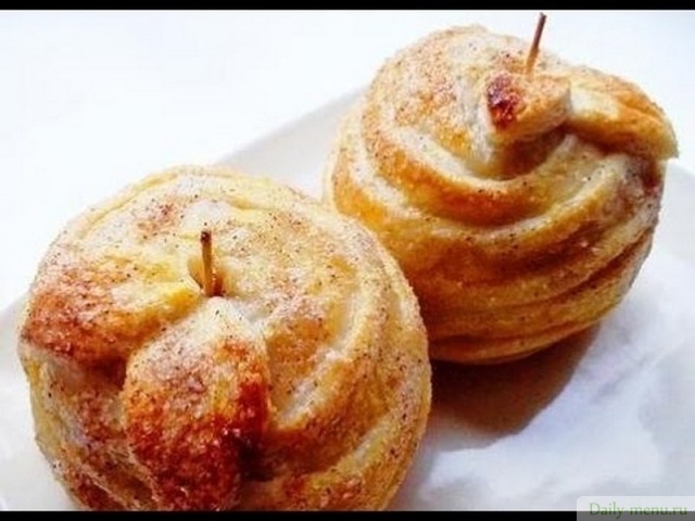яблоки, слоеное тесто бездрожжевое, сахар-песок, мед натуральный (мёд), фундук, яйцо куриное, корица