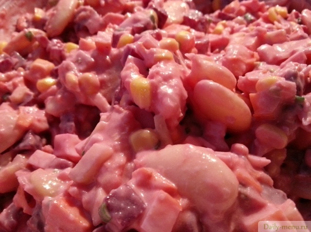 свекла, кукуруза консервы, яйцо куриное, сметана 10,0% жирности, сливки, 10,0% жирности, огурец грунтовый, крабовые палочки, фасоль белая "лима", семга слабосоленая , лук зеленый, горчица столовая