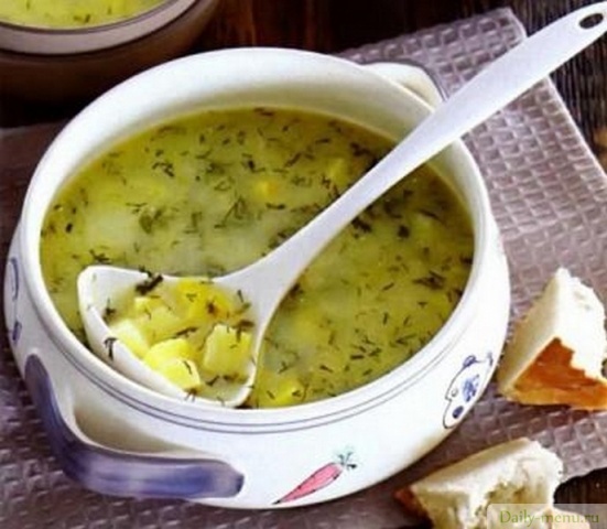 вода, картофель, лук-порей, лук зеленый, масло сливочное 82%, укроп и другие пряные травы, соль поваренная пищевая