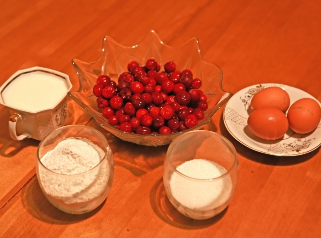 вишня, яйцо куриное, молоко 2,5% , мука пшеничная , сахар-песок, масло сливочное 72%, сахарная пудра