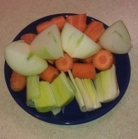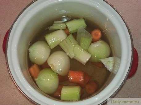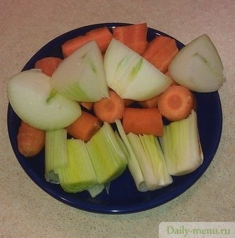 морковь, сельдерей черешковый, лук репчатый, лук-порей, укроп и другие пряные травы, чеснок