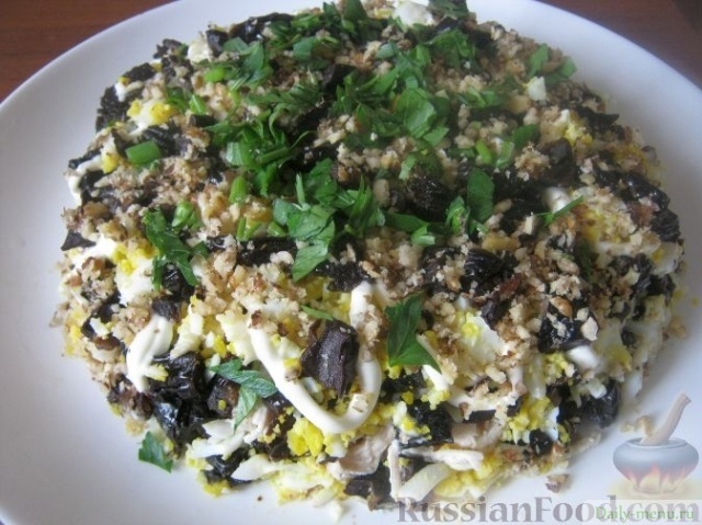 куриная грудка, без кожи, огурец грунтовый, яйцо куриное, чернослив, майонез махеевъ салатный, орех грецкий