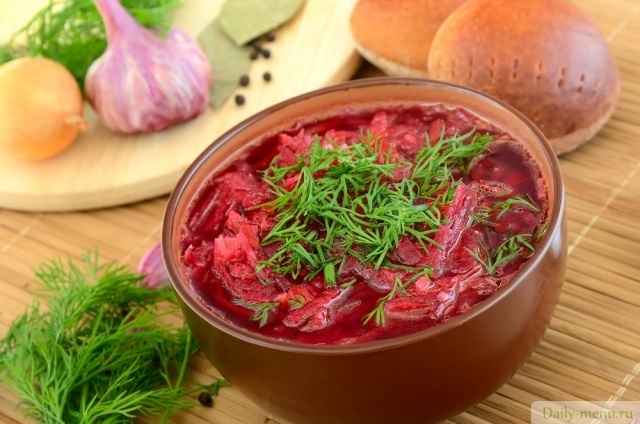 вода, картофель, говядина лопаточная часть, капуста белокочанная, свекла, морковь, лук репчатый, томатная паста